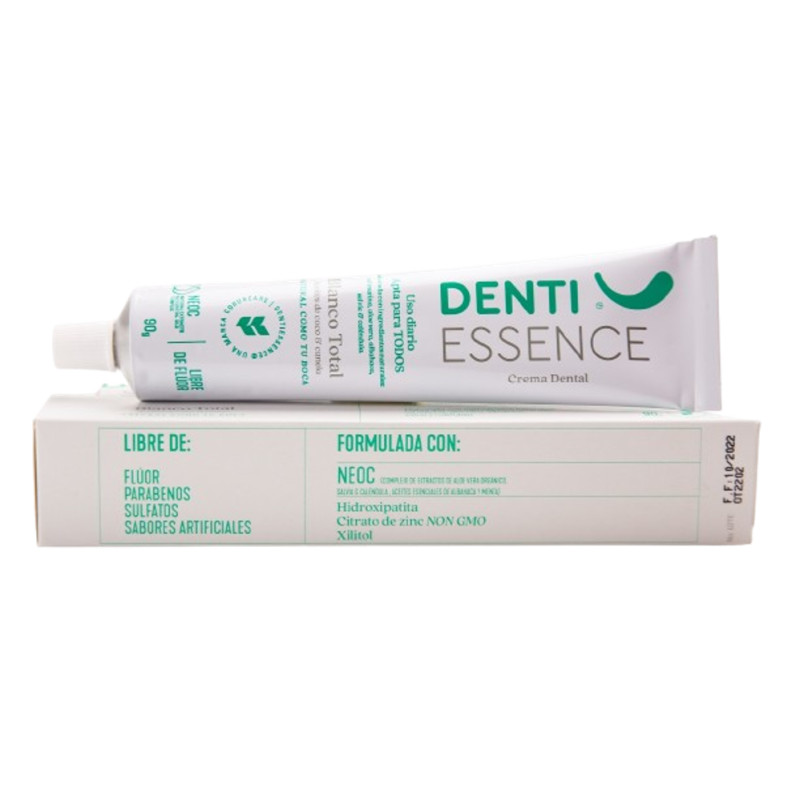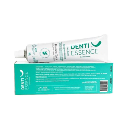 Crema Dental Blanco Total Tubo por 90 g Denti Essence El sabor de DENTI ESSENCE es completamente natural, proviene del aceite esencial de menta arvensis y aceite esencial de canela, brinda una agradable sensación de frescura ¡Natural como tu boca! Sabe a menta suave y canela. Hecha en Colombia. Cruelty Free and vegan. La información presentada por FARMACIA QUANTA es de carácter informativo para el conocimiento general del producto. Tenga en cuenta que en ningún caso debe usarse para el diagnóstico o tratamiento de alguna afección de la salud. De ninguna manera sustituye el consejo o tratamiento médico profesional. Para más información consulte a su médico.