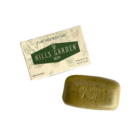 Jabón con Neem de 75 gr Hills Garden es ideal para pieles delicadas o con acné! ¡Es un limpiador y astringente natural, que ayuda a limpiar, desinfectar, tonificar y purificar la piel, tanto de la cara como del cuerpo! ¡Tiene un delicioso aroma fresco, ya que contiene aceite esencial de limón verbena!
