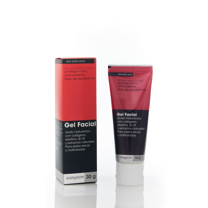 Gel Facial con Extracto de Calendula, Aloe Vera, Colágeno, Q10 Frasco 30 g Kosmaderm El gel facial de Ácido Hialurónico es ideal para pieles que permanecen expuestas a condiciones ambientales. Ayuda a proteger la piel del envejecimiento prematuro. El Aloe vera, el Ácido hialurónico y el Colágeno facilitan la hidratación, mejorando la firmeza y elasticidad de la piel. La información presentada por FARMACIA QUANTA es de carácter informativo para el conocimiento general del producto. Tenga en cuenta que en ningún caso debe usarse para el diagnóstico o tratamiento de alguna afección de la salud. De ninguna manera sustituye el consejo o tratamiento médico profesional. Para más información consulte a su médico.